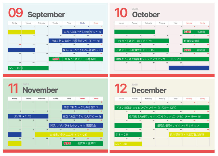 和香里屋2025年9月~12月スケジュール