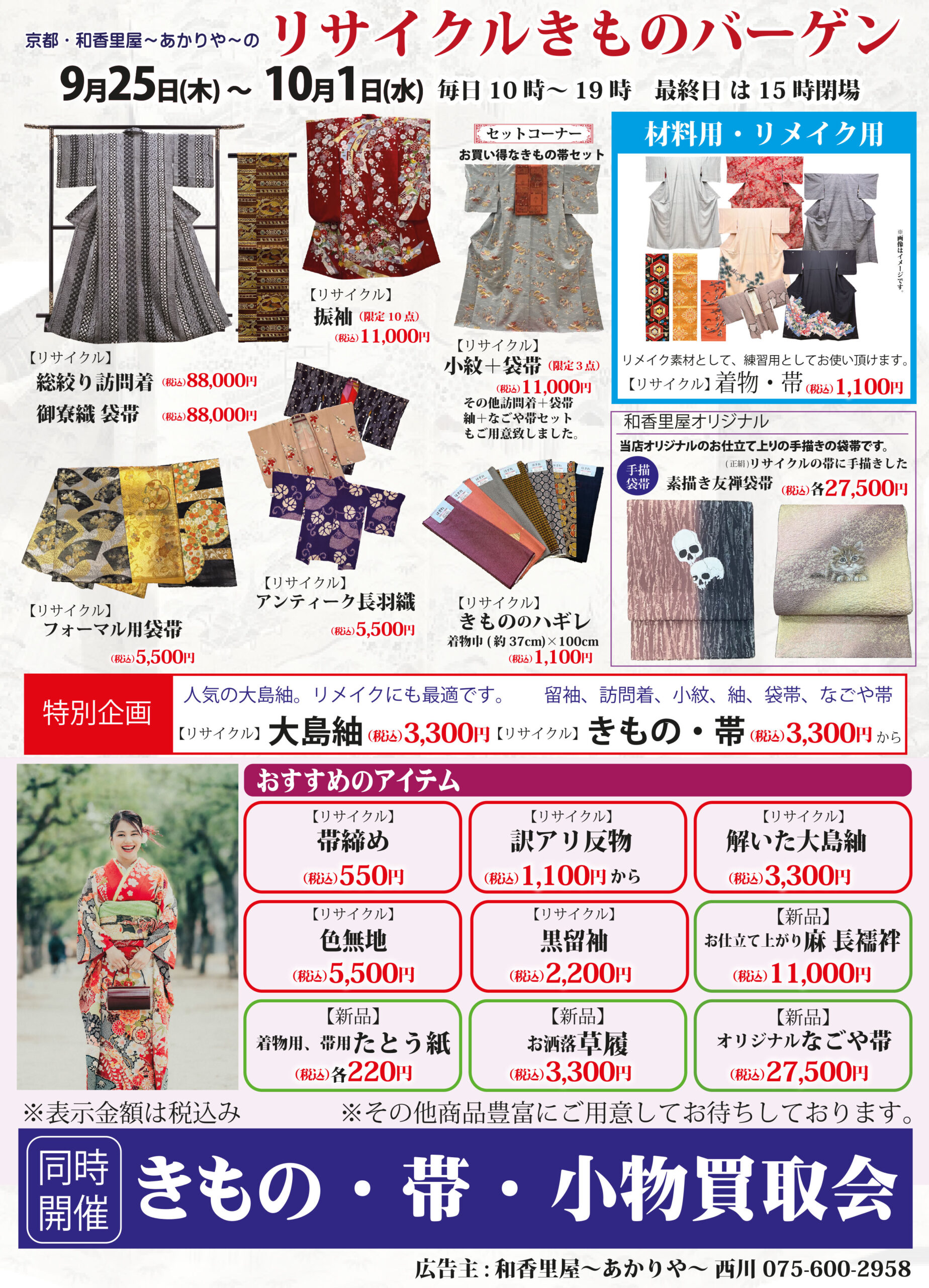 (終了致しました)鳥取市《9月25日〜10月1日》リサイクルきものバーゲンinイオンモール鳥取北