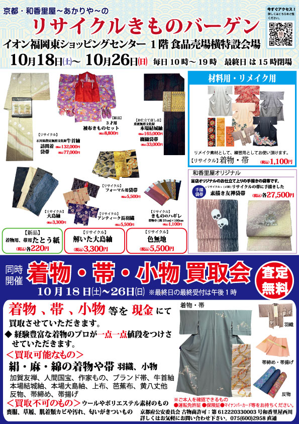福岡県糟屋郡《10月18日〜26日》リサイクルきものバーゲンinイオン福岡東ショッピングセンター