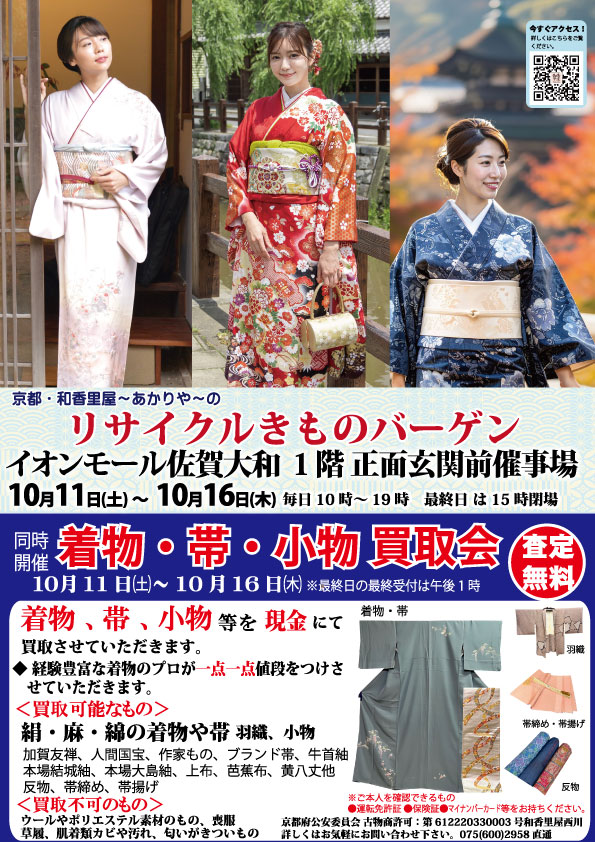 (終了致しました)佐賀市《10月11日~16日》サイクルきものバーゲンinイオンモール佐賀大和
